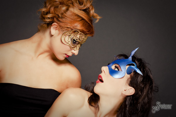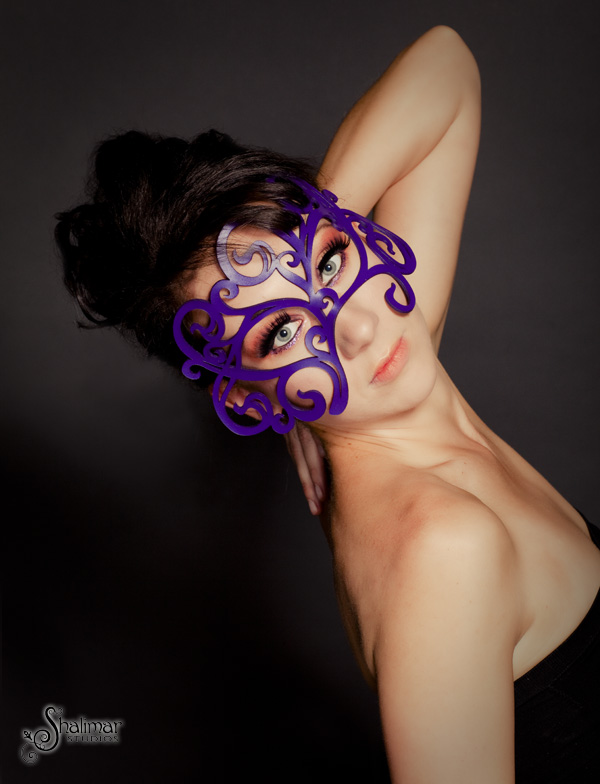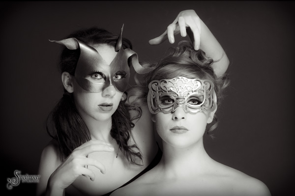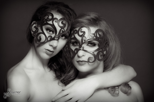 I wanted to do something different and so I've now started a series of photo shoots with themes surrounding various holidays and events we have throughout the year. This particular shoot was Halloween themed with masks, masks, and more masks! I had the pleasure of photographing Olivia and Kady again and believe me, they were perfect for this project! I do hope you'll enjoy this shoot and the fun we had with the Shalimar Studios twist on the traditional Halloween mask.