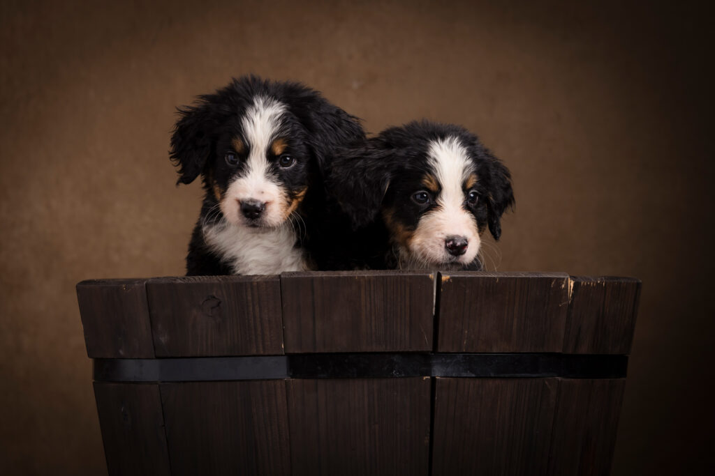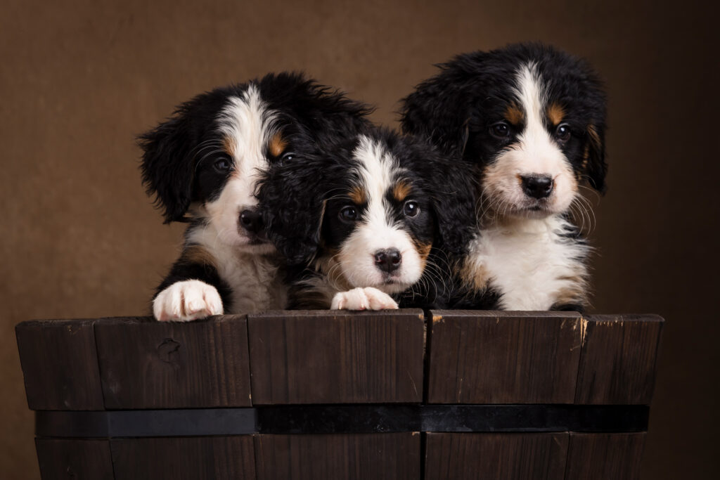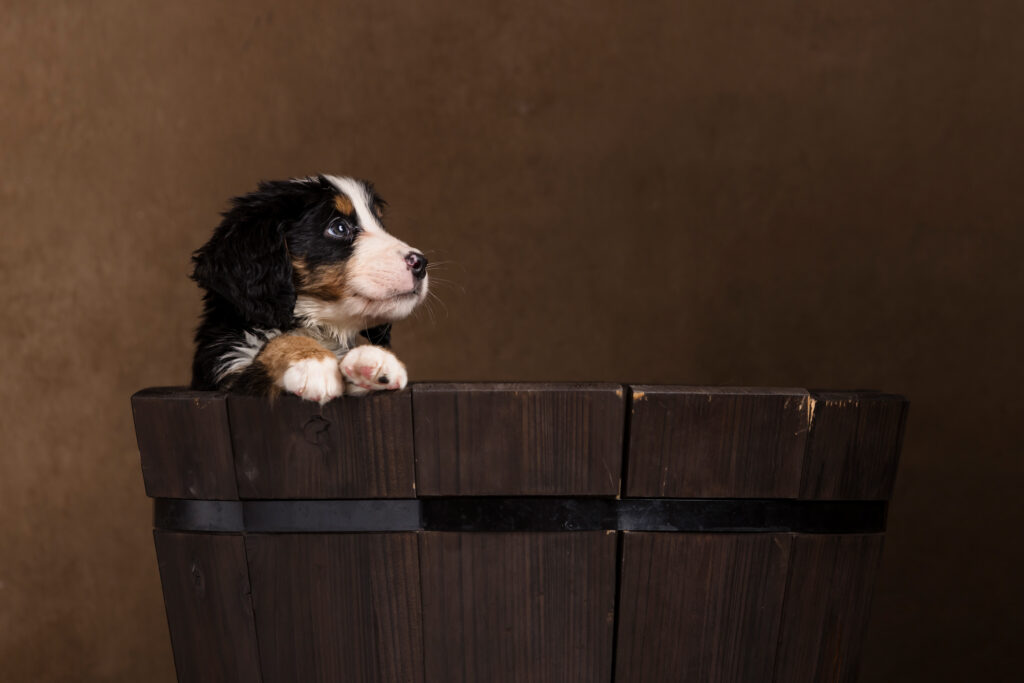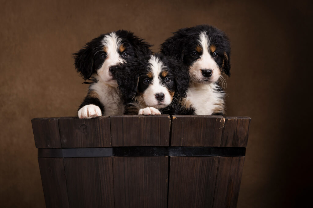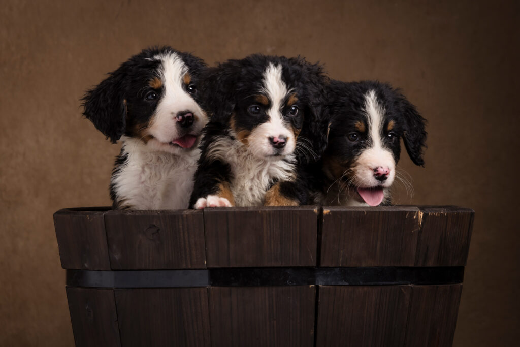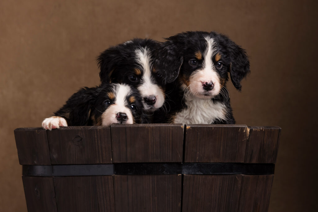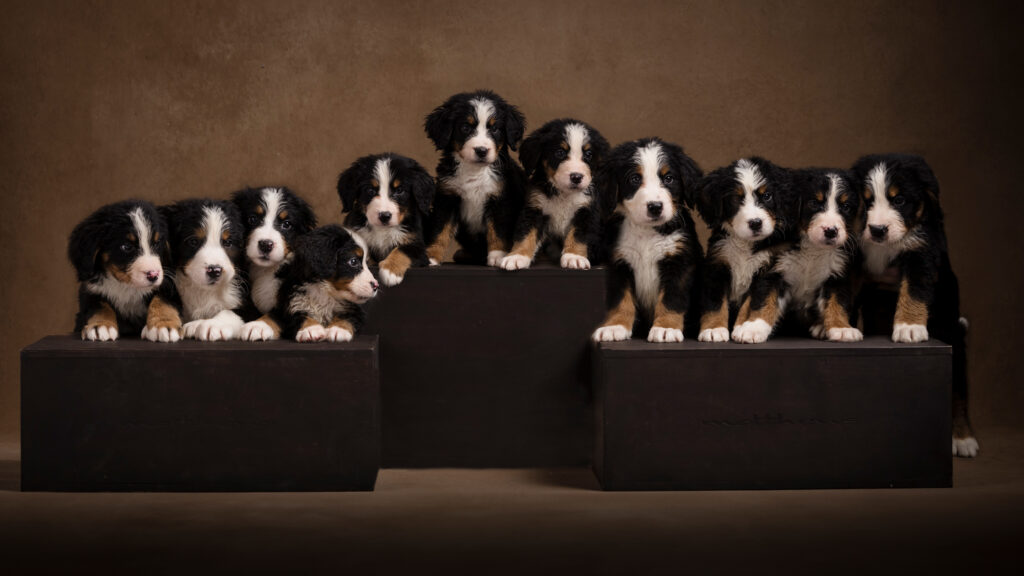 We recently had the joy of returning to Huckleberry Doodles for another adorable breeder photography session—this time capturing twelve fluffy Bernese Mountain Dog puppies!
