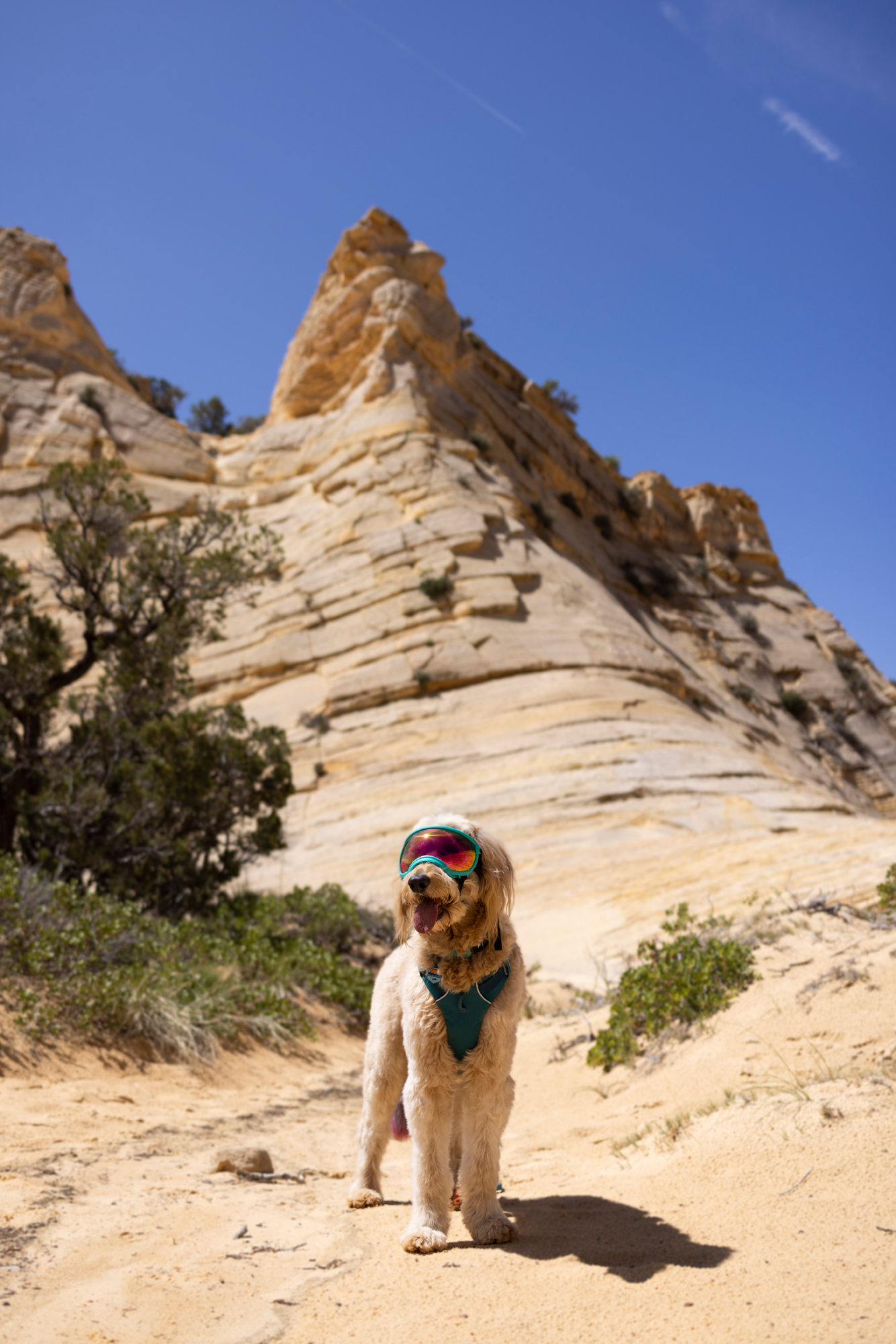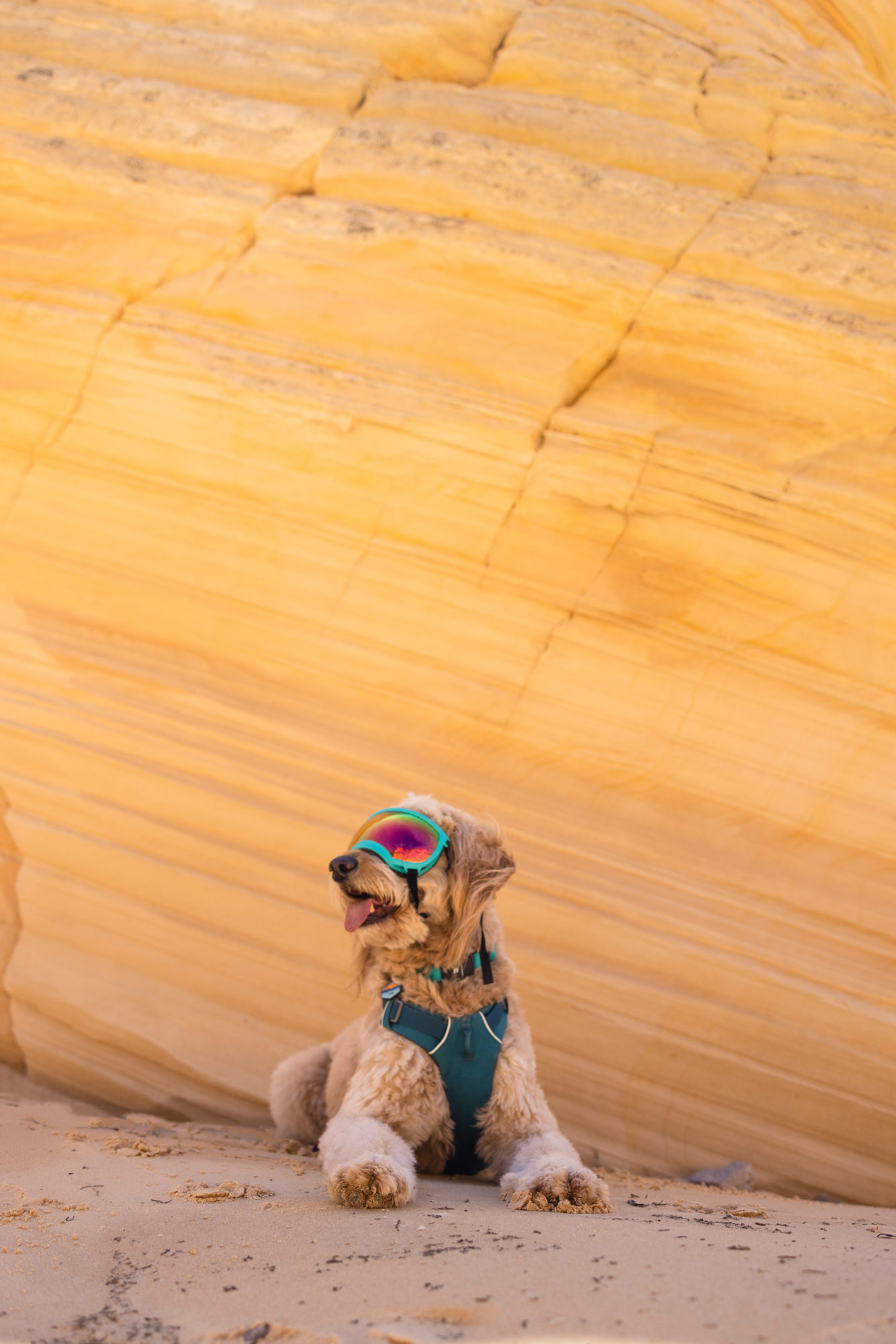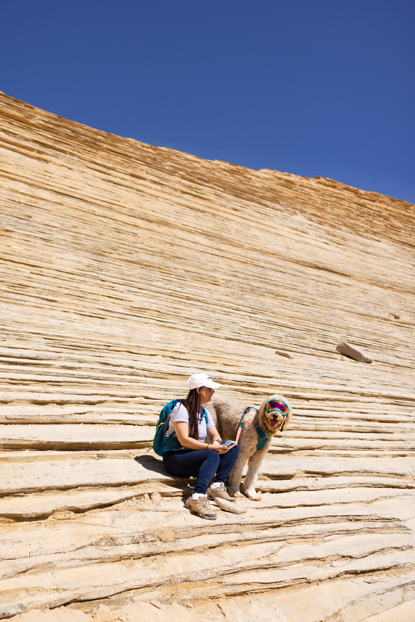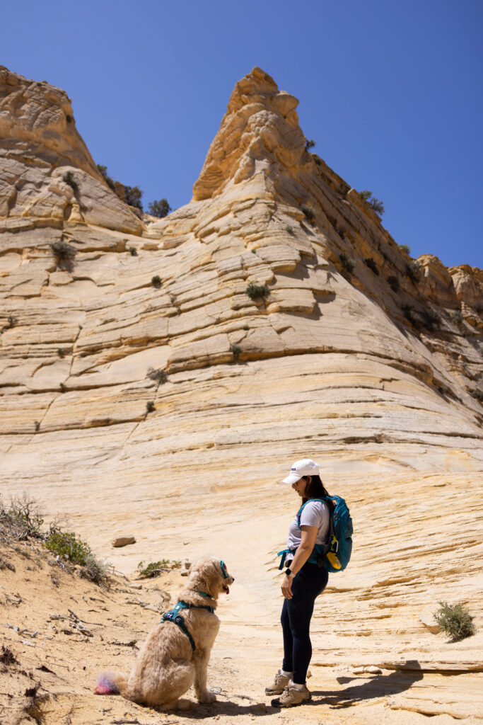 During our tour through Southern Utah’s spectacular slot canyons, Zayn and I documented every aspect of the dog-friendly experience. The resulting images show him confidently navigating smooth sandstone passages, exploring the narrow corridors of Peekaboo Slot Canyon, and providing scale against the stunning white and pink striped formations of the White Wave.