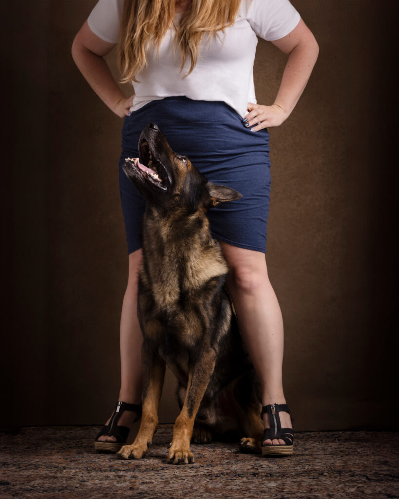 German Shepherds have such striking features and expressive faces, and Lennox is a perfect example. During our pet photography session, we captured his noble profile, those alert ears, and the intelligent gaze that makes this breed so captivating. Chris’s deep connection with Lennox was evident in every frame – that’s the magic that happens when you photograph a team that truly understands each other.