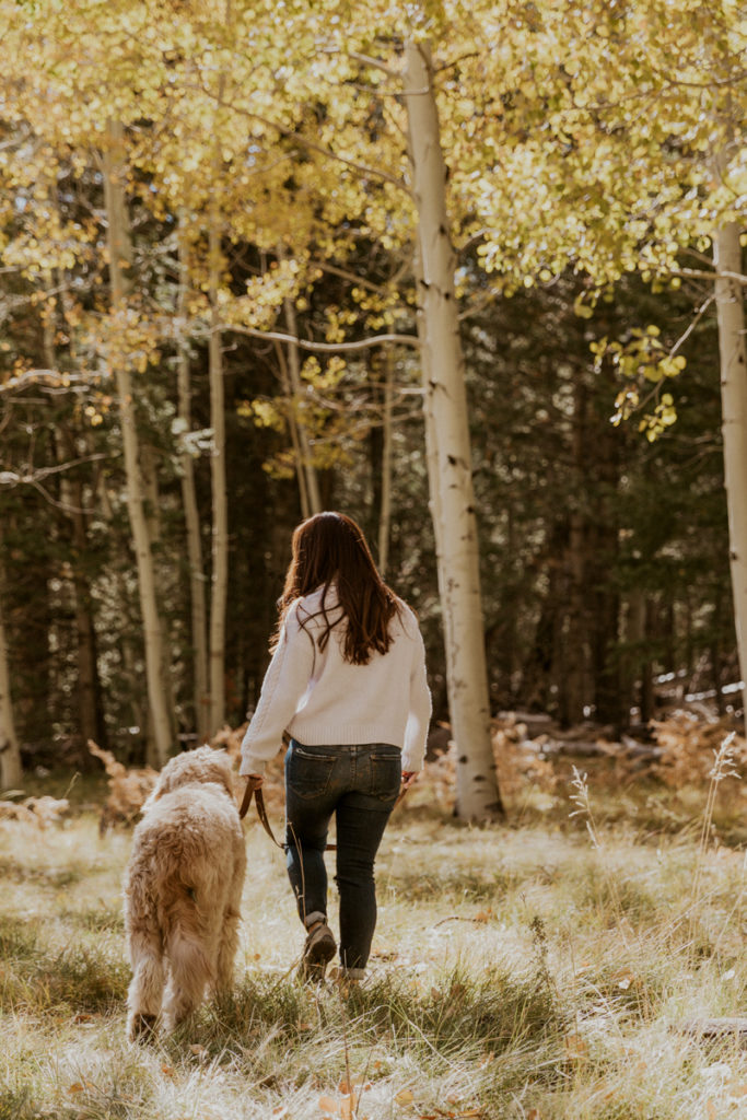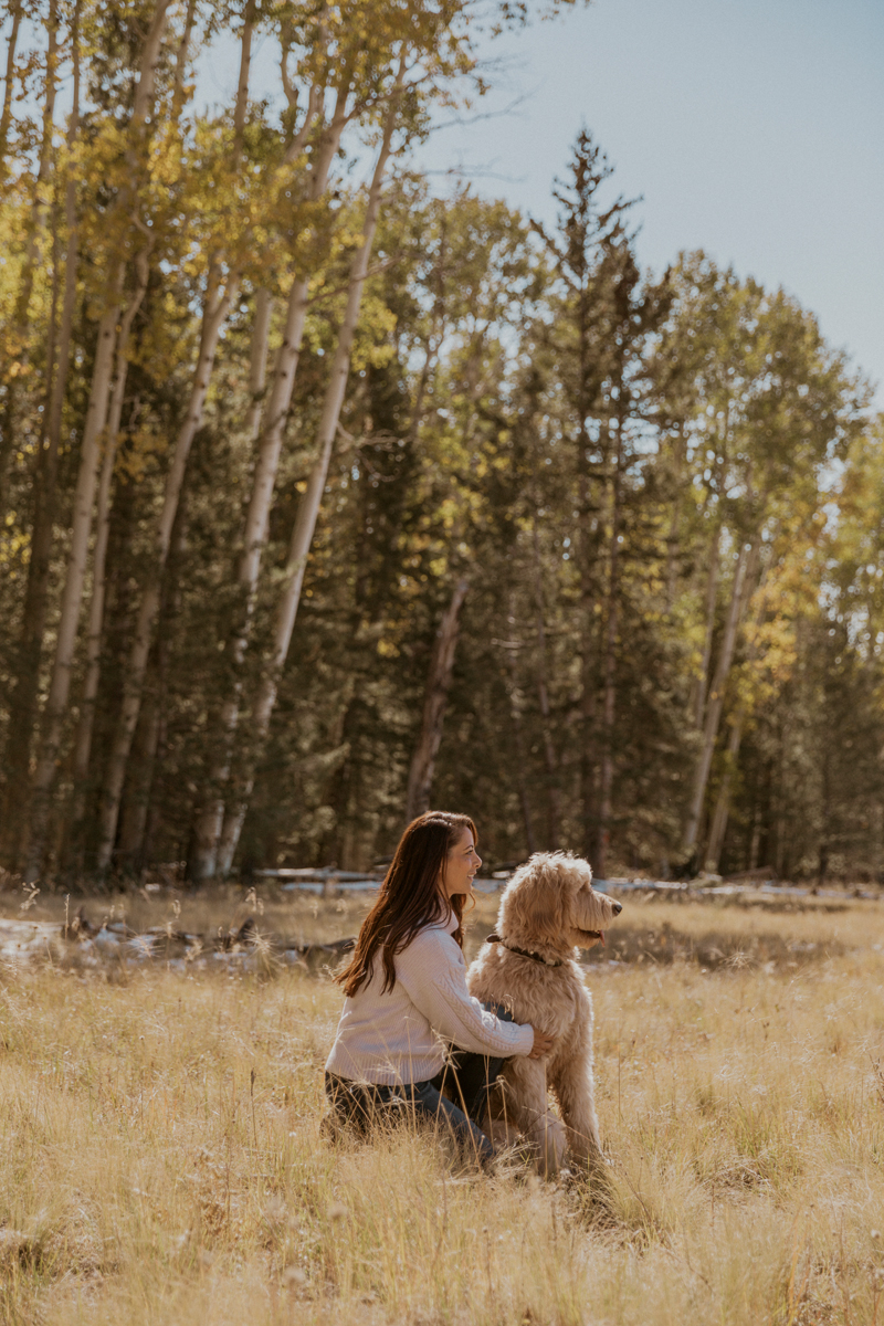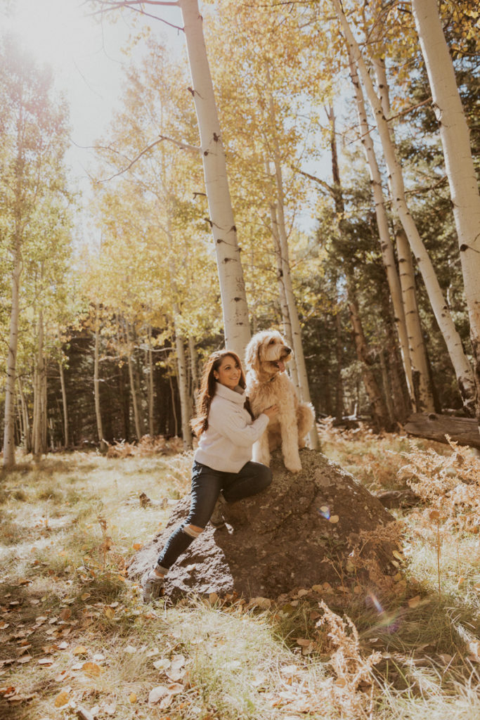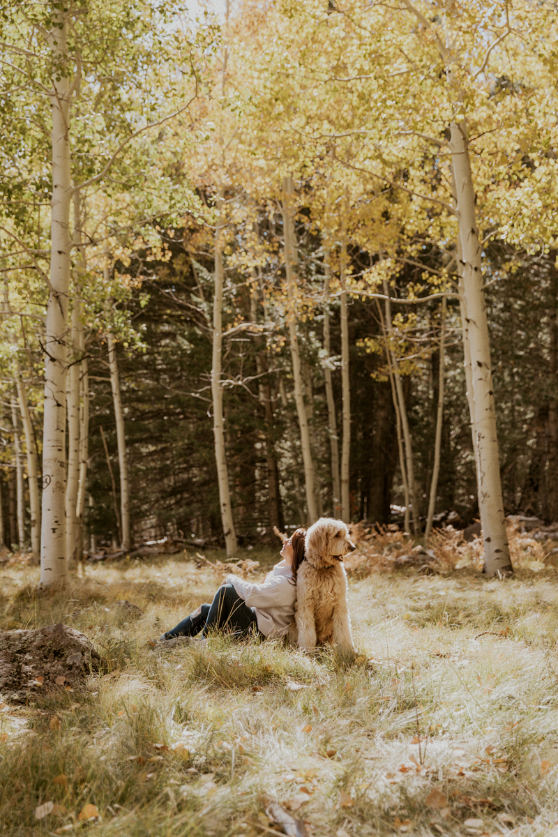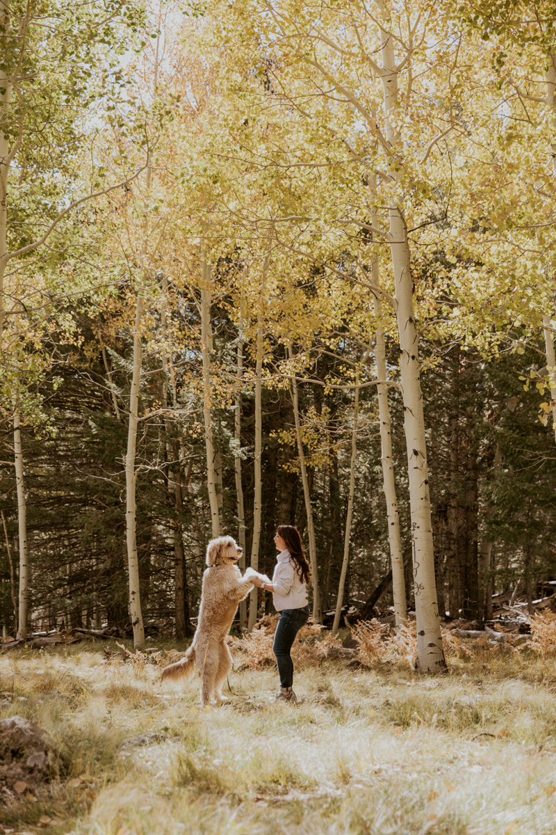 October is a month that business really ramps up, and all the shoots that clients have been putting off due to the heat, start booking for this month. It’s also the time of year that I yearn the most for a trip to the pines and to go out seeking fall colors. Most years I’m not able to do such a trip and that’s because I just don’t have the time. But this year, a strange turn of events opened up a Friday afternoon and I called up our friend Claire Hamilton to meet us 2.5 hours away in the aspen forest near Flagstaff. I knew this would be the only opportunity I’d get, so I grabbed our studio mascot Zayn and made an adventure of it. My only goal for the shoot was to capture the bond and time I spend with Zayn and have it highlighted against the stunning yellow of the aspen trees. I’m so thankful for Claire for capturing these moments for us.