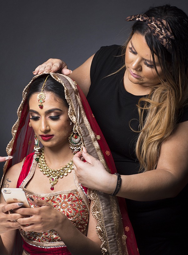 Our latest shoot was at the request of local makeup artist Lina Mourey, who wanted to expand her already booming portfolio to reach out to Indian brides.  Lina had met Ria recently through classes held for professional makeup artists at MAC, and they hit it off.  So when Lina expressed wanting to expand her business to include Indian brides, they contacted me to collaborate on a shoot.