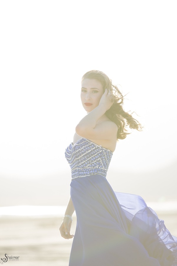 We then moved to our second location, a dry lake bed just outside of Las Vegas. This location is one of my favorite spots to photograph portrait sessions as its blank canvas works perfectly for dramatic or simple portraits. On this particular day, the winds were at extreme levels, but we utilized that to our advantage to highlight Janelle's beautiful blue flowing gown, and long gorgeous locks.