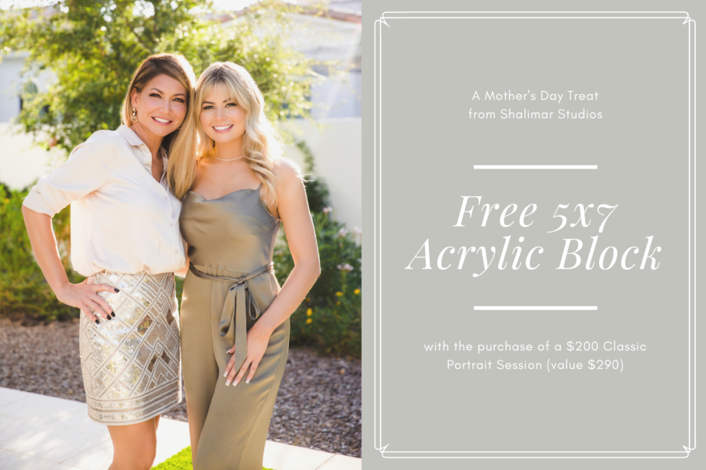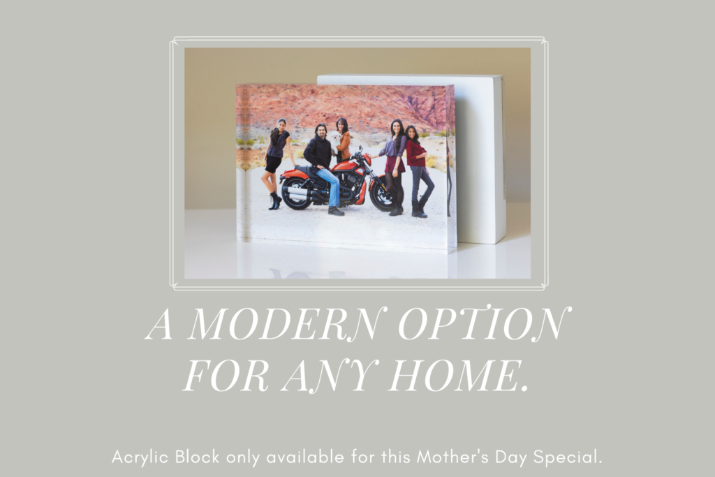 Show Mom the Love! Get the mother in your life a special gift to cherish life’s favorite moments. This year we’re offering a FREE 5×7 Acrylic Block Portrait with the purchase of a $200 Classic Portrait Session (value $290). Our Limited Edition Acrylic blocks are a modern option for any home. They stand on their own, making them the ideal display for small spaces.