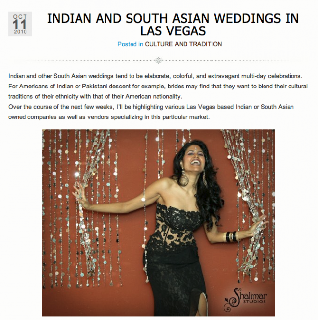 Recently Juliet and I had a conversation via email about the local South Asian community and how we wanted to show them the local resources they have here in Las Vegas. So in her quest to educate the public, she made an announcement 2 days ago in this posting that she will be featuring local vendors catering to that market. She also featured some of my images from South Asian weddings and events in her launch of this series. Well, I have to admit, I’m the local vendor she spotlighted today and I couldn’t be more happy and honored.