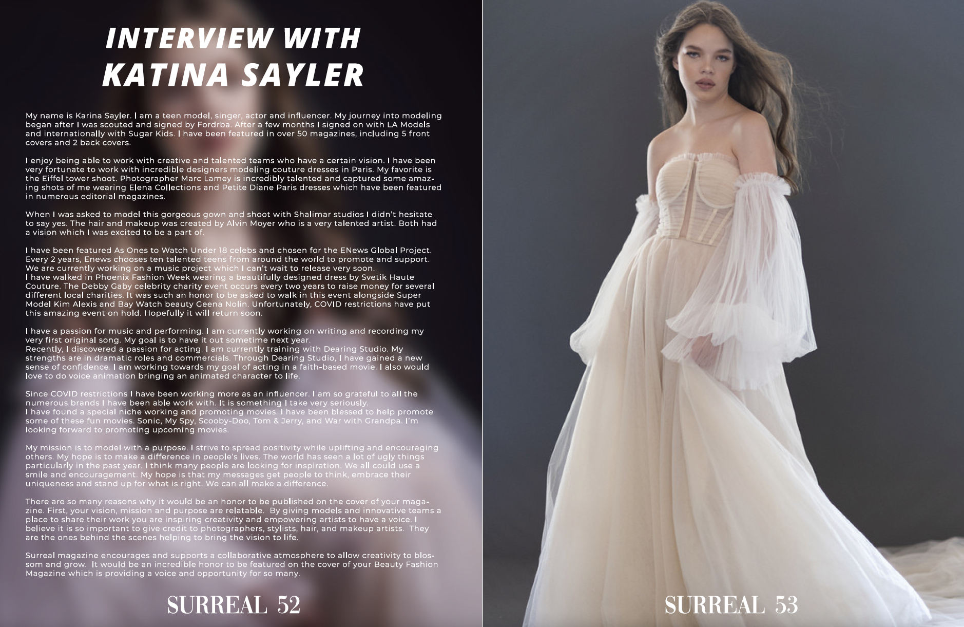 What a great surprise to wake up to notifications that my shoot with Karina Sayler not only is featured in Surreal Lifestyle Magazine, but also on the cover! This is no small task and when we shared these images with the magazine, they immediately jumped at the opportunity to publish the shoot. And there’s a great interview with Karina as well, where she shares her interests in acting and dancing along with her foray into modeling. I could not be more proud of the entire team that came together to make this one of my favorite shoots this year.