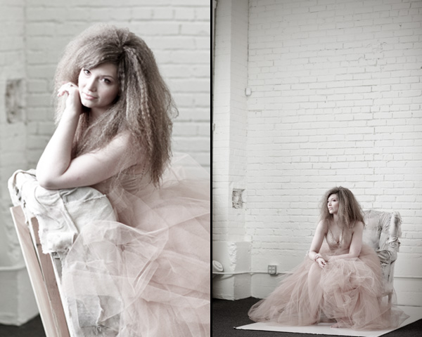 Not only was the weekend full of great posing and lighting tips, but Bambi pulled out all the stops on the third day. She made a dress out of newspaper, draped another model in black tulle with a tulle headpiece, and lastly styled fellow student Tessa in a nude bodysuit with a long tulle skirt.
