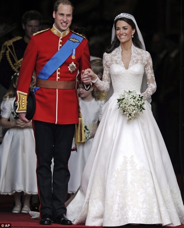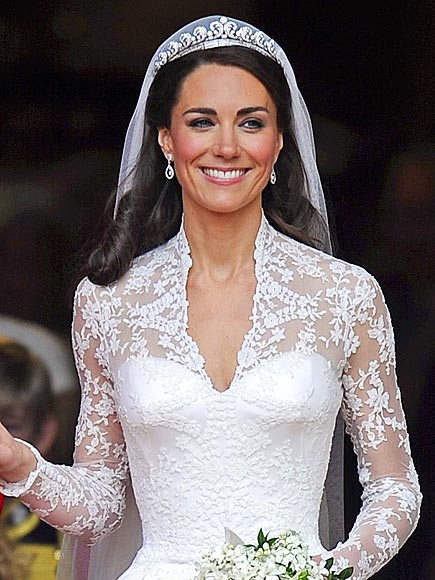 Thank you dear Kate for wearing this gorgeous dress with sleeves! How stunning was that lace draping across her shoulders and down her arms. Bucking with what is on trend right now of bare arms and shoulders, Kate's dress will go down in history as being a classic piece. The lace on the arms produces a beautiful slimming affect and looks gorgeous all at the same time!