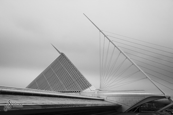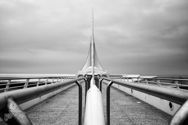 Here's a few images from my stop through Milwaukee a couple weeks ago where I photographed the Calatrava designed Art Museum on the shores of Lake Michigan. It is literally a 2 minute walk from my parent's condo and each time I have gone to visit I say I'll shoot it the next time I visit. Well, determined to some images this time, I went out on a blustery and humid evening with the clouds rolling in. With the winds picking up and my hair growing from the humidity, I had just a few 15 minutes to capture what I could. Due to the high winds the wings of the building were tucked in and not fully extended, however I still think it made for some interesting images.