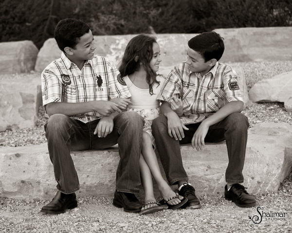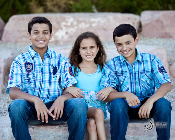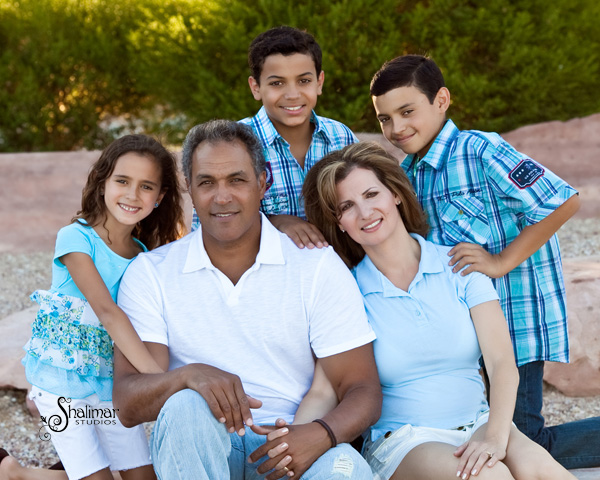 The lovely winners of the package was the Martinez Family, comprising of Mike, Jennifer, Andrew, Adam and Isabella. I have to say, this family is lovely and yummy, all wrapped up in one! I first was contacted by mom Jennifer, and after a few conversations, we nailed down a date for their family session at a local park. The red rock landscaping and lovely green grass easily complimented the family in a relaxed manner. Photographing Andrew, Adam and Isabella was a real treat as they were natural and relaxed all the while showcasing their dynamite smiles!