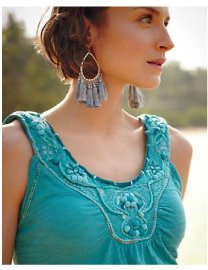 Turquoise, or any of the jewel tones, are some of my favorite colors. I love the color pop, the detail around the neckline, and the chandelier earrings. Very ethnic!