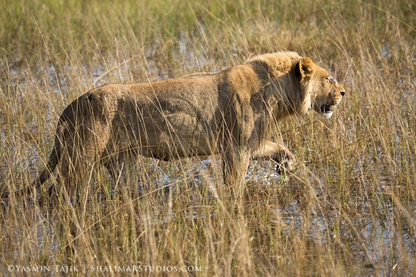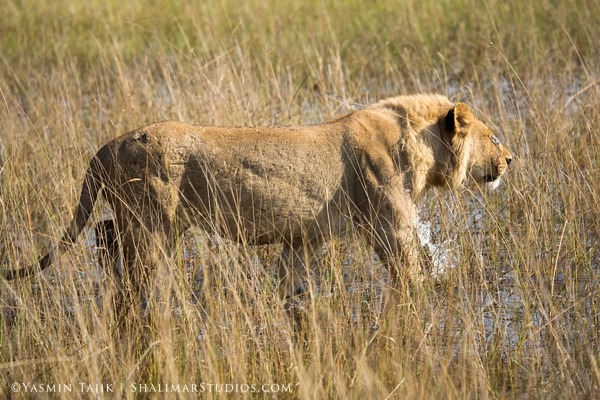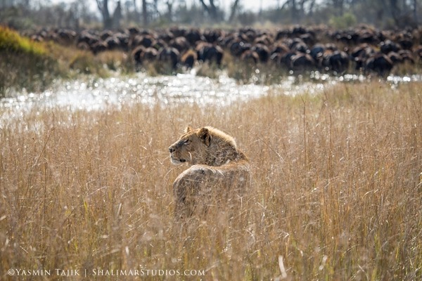 And so on one of my morning game drives in Botswana, I was lucky to come upon a juvenile male lion in the Okavango Delta. As we started tracking him through the waters, we quickly realized he was tracking a herd of buffalo in hopes of making a kill. But watching him stalk the herd was not the only highlight of our morning drive, it was witnessing this beautiful creature's adaptation to aquatic living. And just as the buffalo herds and other prey cross the waters, so have the lions learned to adapt crossing the waters and swimming in the Delta.