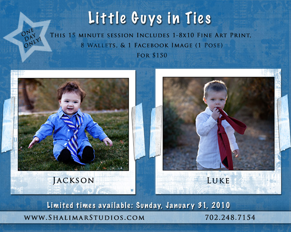 Dress him up like Dad! Don't miss out on our first Special Edition Portrait Session of 2010. It's for one day only on January 31st and times are limited. Be the first to capture these precious moments before they are gone!