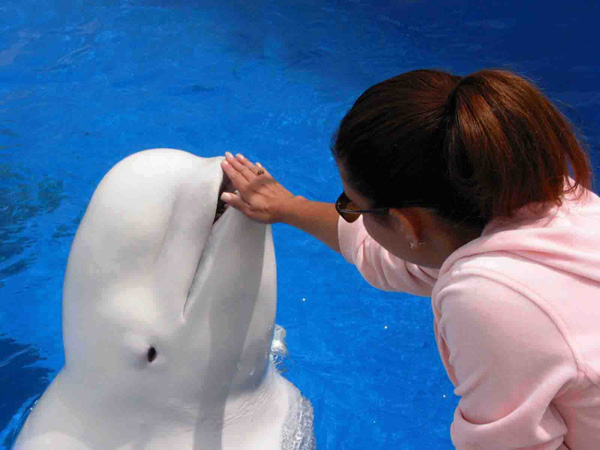 Playing with the beluga whales at Sea World in 2002.