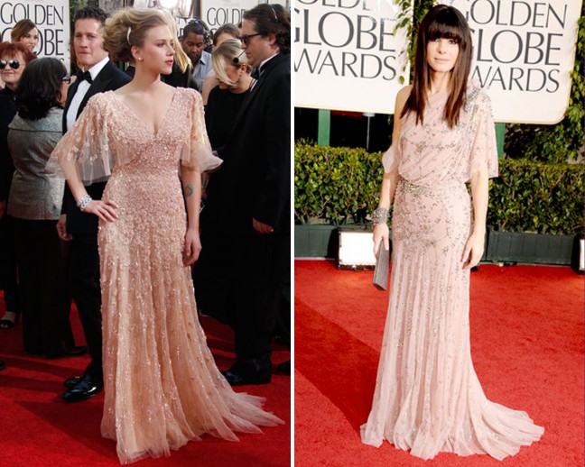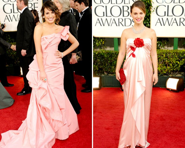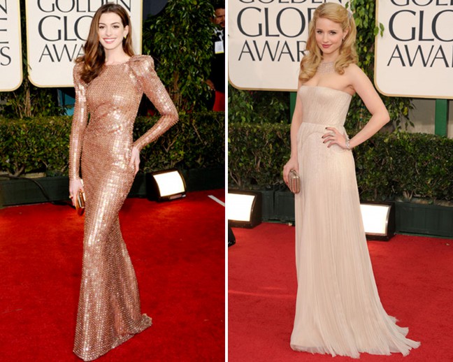 In addition to the dominant color choices of nude, pink and gold, I wanted to point out the textures and embellishments that take the outfits one step further towards unique and chic. The beautiful texture of Anne Hathaway's gown was unbeatable, but what really caught my attention on her dress was her exposed back. What an amazing portrait to capture of her with her back to the camera, and ever so casually, looking back over her shoulder towards the camera. And the flower embellishment on Natalie Portman's dress gave it just a hint of femininity. Of course all these details should be utilized in minimal ways so as not to distract from you, the beautiful subject, but as you can see from some of these samples, a little goes a long way for a gorgeous, timeless and individual look.