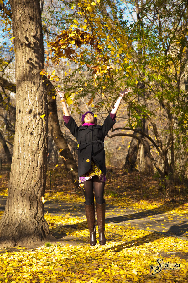 Strolling through Central Park and playing in the leaves.